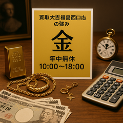 買取大吉福島西口店の強み:金査定と年中無休10:00~18:00